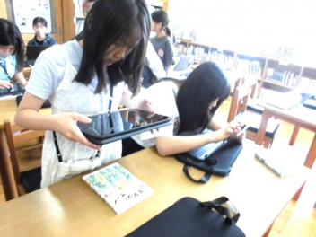 今年度から3~6年生は、読んだ本の表紙をタブレットパソコンで写真に撮り、その記録を保存していくことにしました。データは蓄積されていくため、自分がどんな本を読んだのか、どのくらい本を読んでいるのか、子供自身がいつでも確かめることができます。子供自身が自分の読書活動を見直したり、読書への意欲が高まったりするきっかけにしたいと考えています。