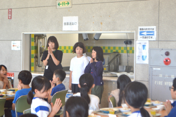 給食の時間には、相生小の栄養教諭の先生をお招きし、2年生に食育指導を行っていただきました。給食の配膳や喫食の様子を見ていただき、食事を摂ることの意義やバランスよく何でも食べることの大切さについて、児童の発達段階や実態に合わせて御指導くださいました。