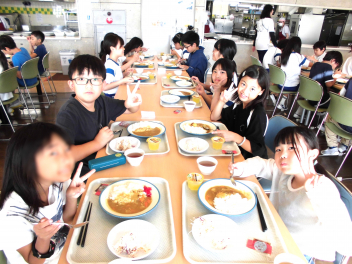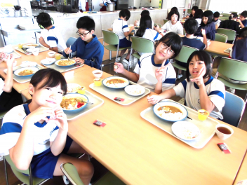• 「自然教室」2日目の昼食、三ケ日青年の家での最後の食事は、子供たちが大好きなカレーでした。3杯、4杯おかわりをする子もいて、あっという間にご飯の電子ジャーとカレーの鍋が空になりました。大満足の最後の食事でした。