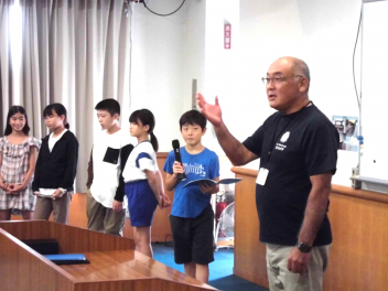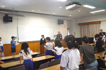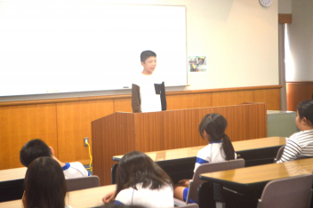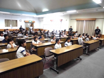 代表の児童が、「自然教室」で頑張ったことや楽しかった思い出を堂々と発表しました。また、所員の方に感謝の気持ちを込めて全員で「ありがとうございました。」の挨拶をしました。