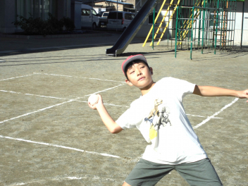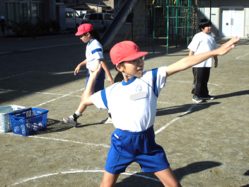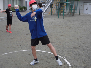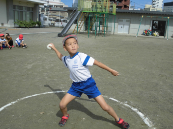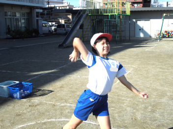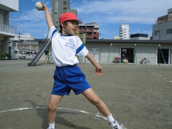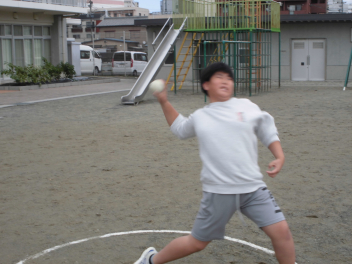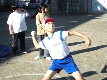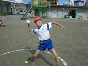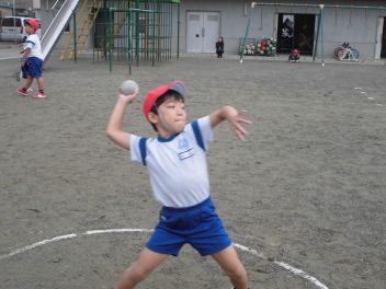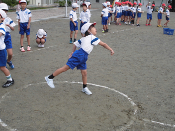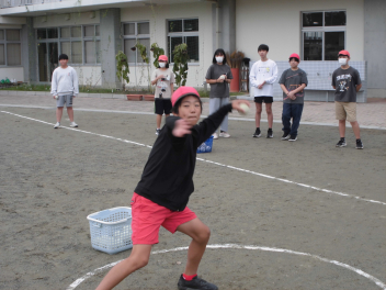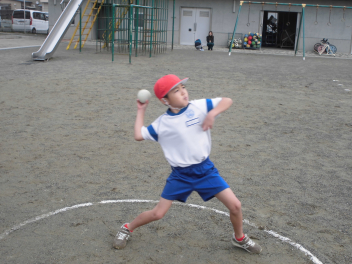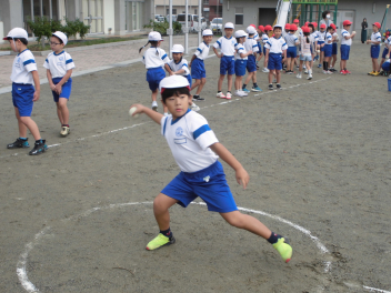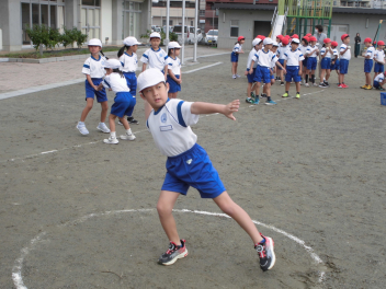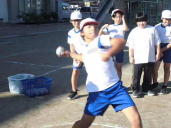 • 雨が続いたため、新体力テストの運動場で行う種目ができませんでした。今日は雨が止んだため、全学年の子供たちが急遽『ソフトボール』投げの記録を測定しました。