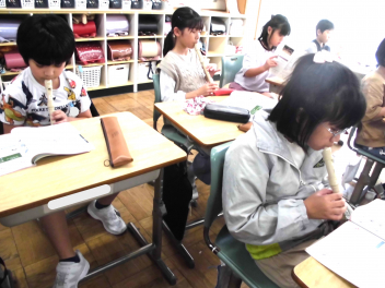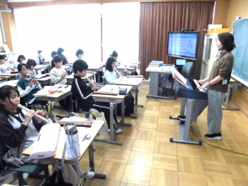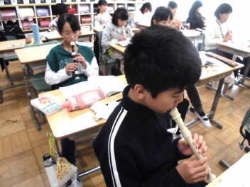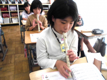 • 4年生は、音楽科「せんりつの とくちょうを 感じ取ろう」の学習で、『陽気な船長』の曲をリコーダーで演奏していました。