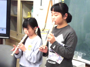 子供たちは、いろいろな吹き方を試しながら互いに聴き合って、よいところや工夫したことを伝え合いました。