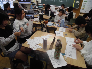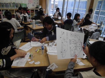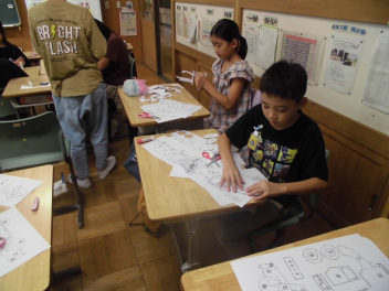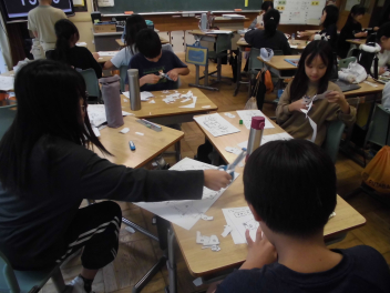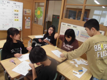 • 前回の学習では、個人で自動車の模型を作りました。今回はグループで工夫をして「正確に」「速く」自動車の模型作りをしました。グループで協力して作っていたため、前回よりも速く完成することができていました。中には、切る担当、貼る担当に分業してやるグループが出てきました。次回は今回の工夫から、自動車を作る人々の工夫を調べていきます。