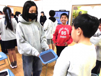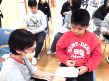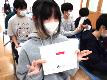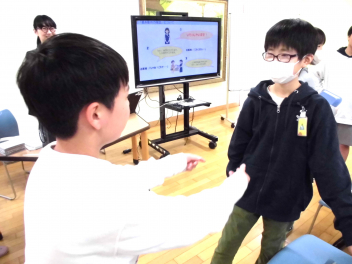 「ぼくは、製品を作ることはできたけれど、どうやって販売したらいいのか心配でした。ですが、マナーや接客態度を教えてもらったお陰で少し安心しました。」「お客様に「ありがとう。」と言ってもらえるくらい頑張りたいです。」「販売するのは、とても大変だということを知りました。」など、子供たちの率直な感想が出ました。12月4日(木)の販売本番に向け、これからの目標ができました。