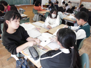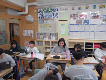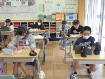 5時間目、6年生の教室では、「接遇研修」の振り返りをしました。