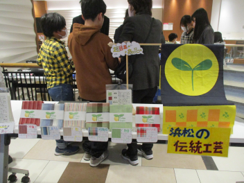 到着し、遠鉄百貨店の方やボランティアさんに挨拶をすると、すぐにディスプレイの開店準備です。始めは机と表示だけだった