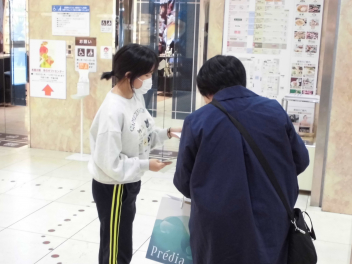チラシ員たちは、たくさんのチラシを配りながら積極的にお客様に声を掛けることができました。