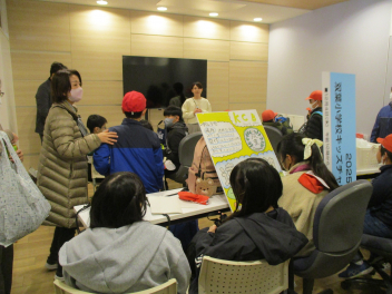 館内アナウンスに立候補し、オーディションで選ばれた子供たちが、キッズチャレンジビジネスの宣伝を行いました。