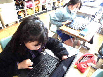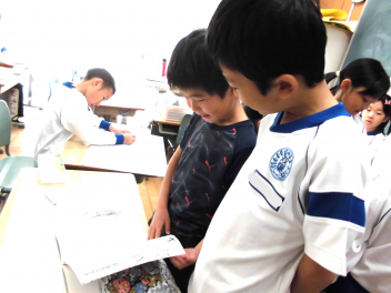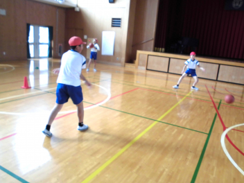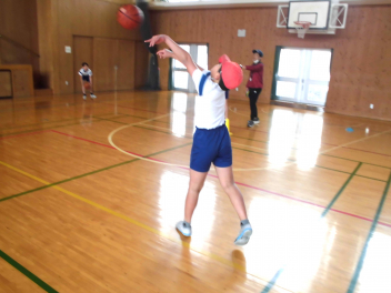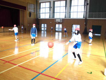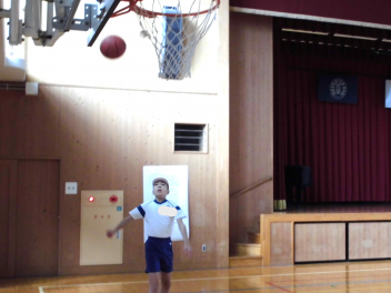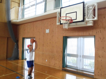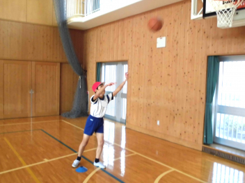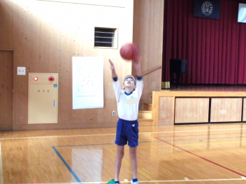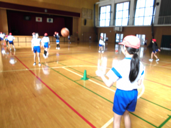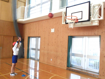 • 5年生は体育科で、「バスケットボール」の学習を始めました。今日はボールに慣れることを目的に、パスやシュートの練習に取り組みました。シュート練習では、シュートが入ると歓声が上がっていました。