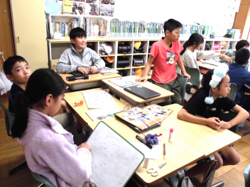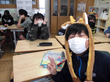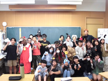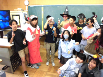 • ハッピーハロウィン!・・・5年生は教室で、思い思いの仮装をしてハロウィンを楽しんでいました。みんなで記念撮影です。