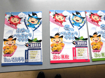 • 『ふゆのべんきょうくらぶ』の教材見本を職員室前の廊下に置いてあります。冬休みの課題として学生協で購入することができ、11月21日(金)が注文の締め切り日となります。来校する際、どうぞ御覧ください。