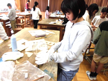 • わかば学級の1年生の子供たちが、図工室で粘土遊びをしていました。