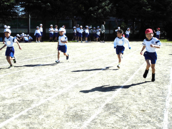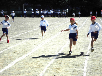 • 1・2年生が運動場で、新体力テスト/50m走の記録測定をしていました。子供たちは最後まであきらめず、一生懸命に走り切りました。今までの最高記録が出たでしょうか・・・?