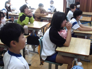 • 5・6年生が「学校保健委員会」に参加しました。6年生の教室でスクールカウンセラーが講話をし、その様子を5年生がオンラインで視聴しました。