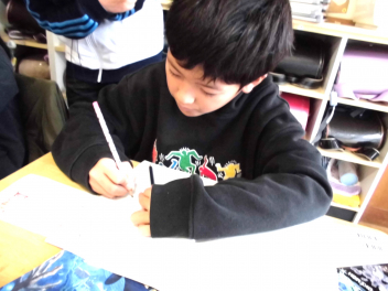 今日は、『はじめ』『中』『おわり』に分けて作文を書く時の『中』の文章構成をどのようにしたらよいのか、友達と交流することを通して自分の考えを深めました。