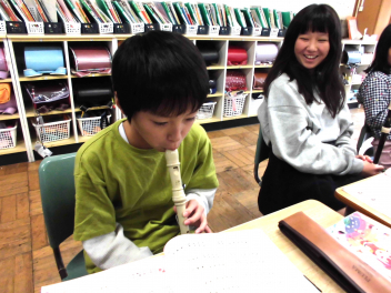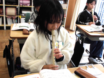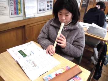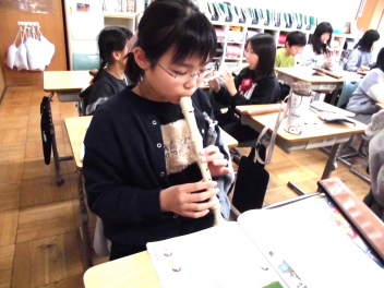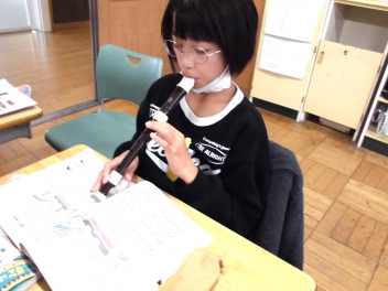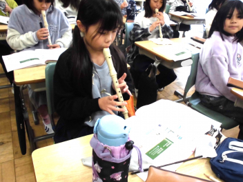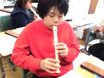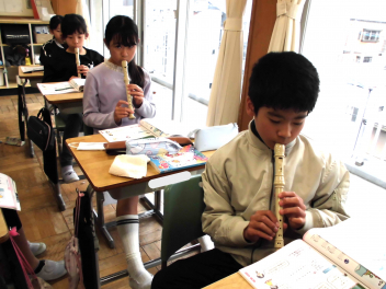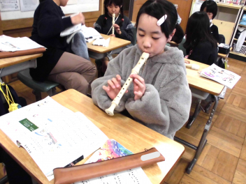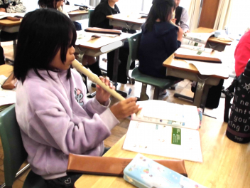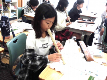 • 4年生は、音楽科「せんりつの とくちょうを 感じ取ろう」の学習で、『陽気な船長』の曲をリコーダーで演奏していました。