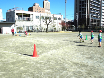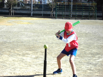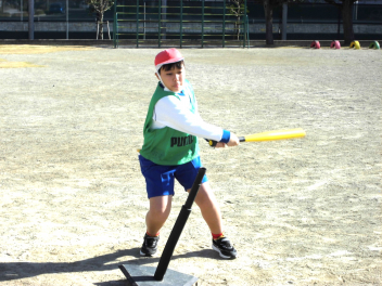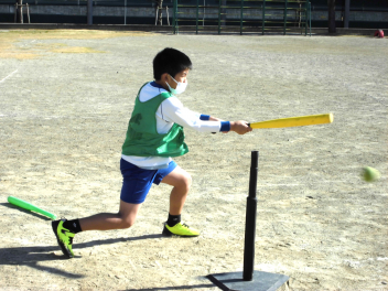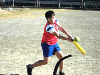 • わかば学級の4~6年生が、体育科の学習で「Tボール」にチャレンジしています。ティーに乗ったボールを打つことにも慣れ、ボールを遠くに飛ばすことができるようになりました。また、ルールを理解し、互いに声を掛け合って守備ができるようになりました。