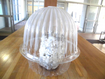 昇降口のところに、透明のケースが置いてありました。これは・・・!?1学期にキクラゲを栽培したケースと同じです。
