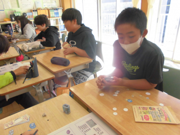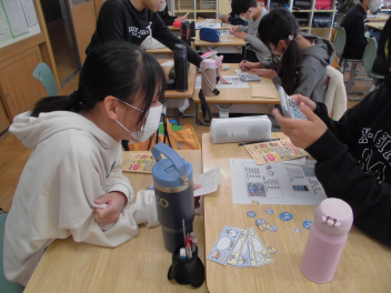 子供たちが「不安だから練習をしたい。」と言っていた商品販売の模擬練習です。事前に作った紙のお金を使って、商品の合計金額やお釣りの金額が正確にできるように、ペアを変えながら何度も練習を行いました。