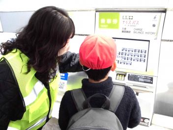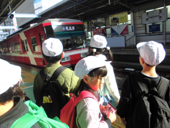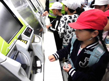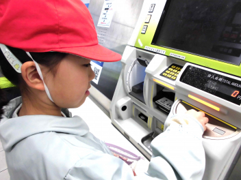 昇降口前で「行ってきます。」の挨拶をし、遠州鉄道新浜松駅に向かって出発です。駅に着いた後、一人一人、券売機で切符を購入しました。