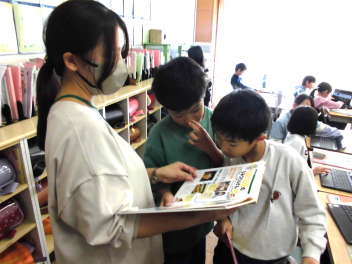 電車を降りた後は、浜北図書館に向かいました。図書館では、図書館の使い方についてレクチャーを受けたり、自由に本を読んだり、読み聞かせをしていただいたりしました。