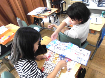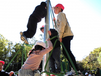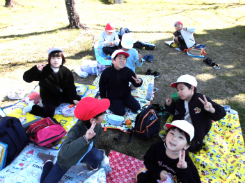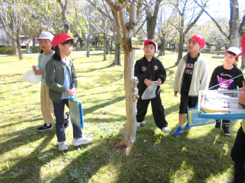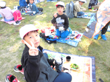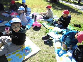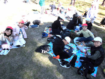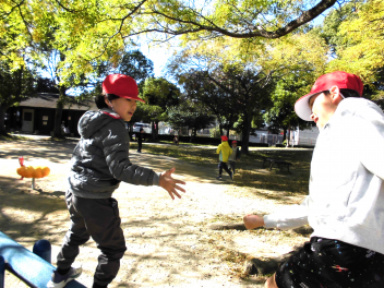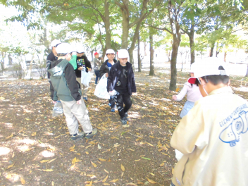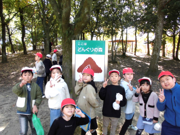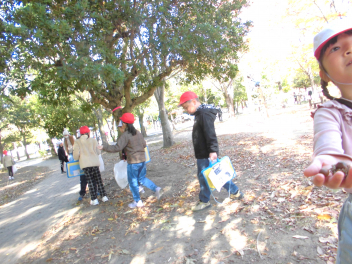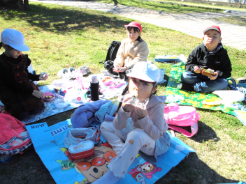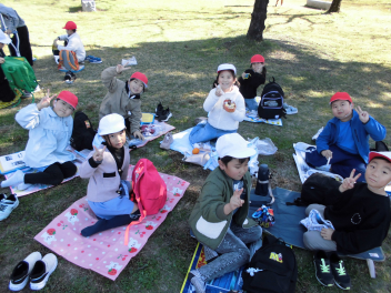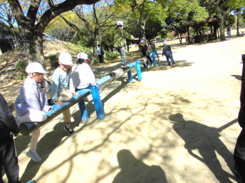 そして、図書館を出た後、楽しみにしていた美薗中央公園へ行きました。1・2年生混合のグループで、仲良くお弁当を食べたり、ドングリを探したり、遊具で遊んだりして、秋の季節を感じながら活動することができました。