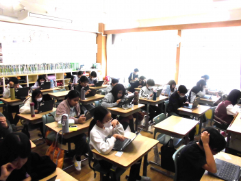 販売員たちは、商品について紹介しながら、購入してくださるお客様役に対して一つ一つ落ち着いて対応することができました。「クレジットカードは使えないのですか?」や「レシートが欲しいのですが。」など、戸惑ってしまう要望に対しても、丁寧に対応する姿に子供たちの成長を感じました。子供たちの感想の中から「今日学んだことを当日の販売活動に生かしていきたい。」という意欲が感じられました。