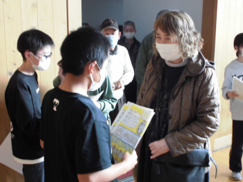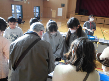 パネル宣伝員たちは、今まで経験してきたことや調べたことなどを丁寧に話をしながら「伝える」ことを意識していました。ただ、振り返りのときに「いろいろな質問があってすぐに答えることができなかった。」や「パネルの表示についてアドバイスをもらった。」など、多くの気付きがありました。