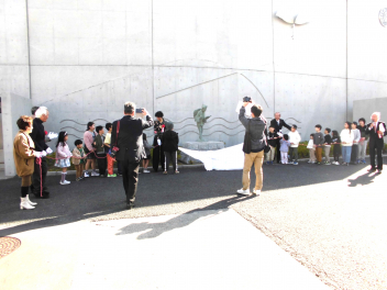 11月30日(日)には、「なかよし金次郎像」の除幕式を行い、関係者並びに地域の皆様方が参加しました。旧南小学校の金次郎像は、現在修理中のため2体が揃っていません。3学期のはじめには設置され、完成する予定です。楽しみにしていてください。