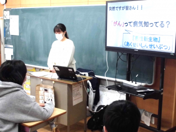 一生のうち2人に1人がかかると言われている『がん』を予防するために、生活習慣を整えることや、自分の健康状態を知ることの大切さを学びました。『がん』に関するクイズを通して、『がん』予防について分かりやすく教えてくださいました。子供たちが「健康診断を受けるのは何のため?」「なぜ生活習慣を整えることが大切なの?」と考える機会になりました。