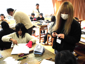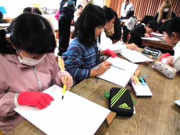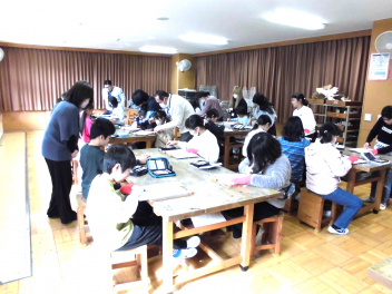保護者・地域の学習ボランティアの方々に見守られ、子供たちは初めて使う彫刻刀にどきどきしながらも、安全に作業をすることができました。