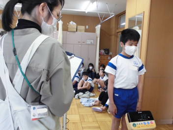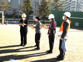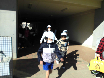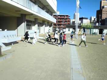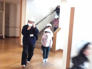 休み時間に地震が発生し、避難の途中に余震が起こり、その後さらに大津波警報により垂直避難が必要になるという想定で行いました。今回は『予告なし』の訓練であり、運動場の遊具で遊んでいる子、避難の途中の余震の際にちょうど階段を下りていた子もいました。一人一人が自分の身を守るために『自分で考え、行動』するという経験の機会になりました。振り返りの時間には、日頃から「聴く力」や「自ら考え行動する力」をつけていくことが災害から命を守るために大切であることを改めて考える時間となりました。