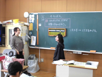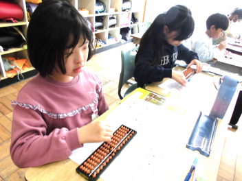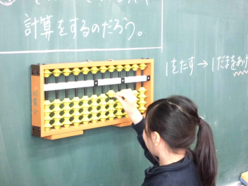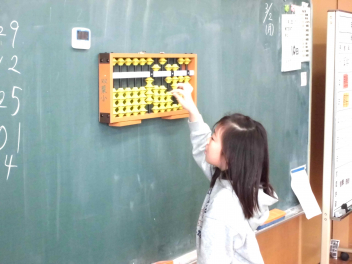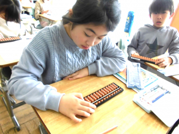 • 3年生は、算数科の学習で「そろばん」に挑戦しています。今日は、そろばんの珠の動かし方や数の表し方を練習した後、1位数や2位数の加減計算に取り組みました。子供たちは学習を通して、そろばんの仕組みに関心をもつとともに、そろばんのよさに気付くことができました。