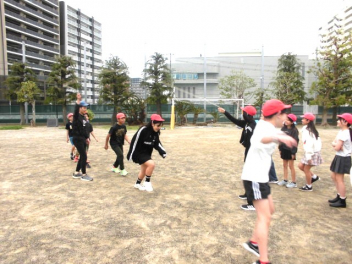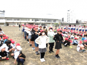 全校児童が運動場に集まり、体育科担当より、運動場の使い方や体育の授業のきまりなどについて伝えられました。