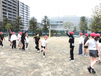 実際に、5・6年生の児童が、整列の仕方など、集団行動の基本をお手本として紹介しました。