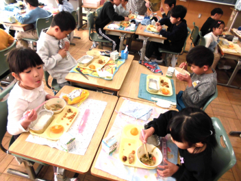 学級の友達や先生と一緒に食べるのもまた楽しさの一つです。