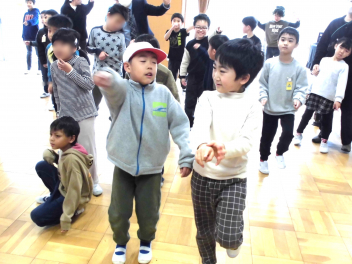 音楽に合わせて楽しく踊ったり手拍子をしたりして取り組みました。