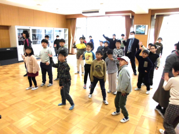 • わかば学級の1年生から6年生が音楽室に集まり、学習発表会で披露するダンスの練習をしていました。