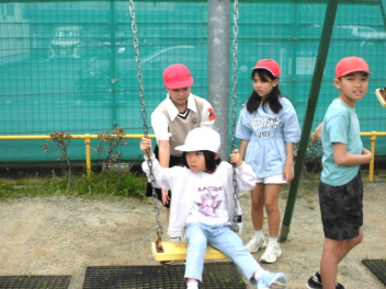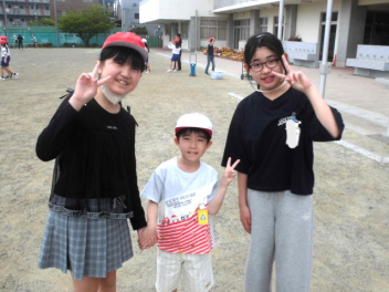 今日はペア同士の顔合わせをした後、一緒に写真を撮ったり、楽しく外で遊んだりしました。お兄さん・お姉さんに優しく接してもらい、1年生は笑顔いっぱいでした。1年生に頼りにされる6年生の笑顔も輝いていました。