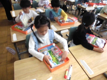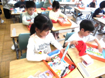 • 1年生が、道具箱の整頓の仕方について、先生と一緒に確認していました。できることが一つずつ増えていきますね。自分のことは自分でできるよう、見守り、支援していきます。