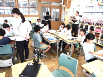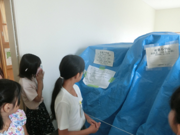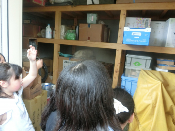 • 4年社会科「自然災害からくらしを守る」の学習では、子供たちが学校で自然災害に備えている物を調べました。子供たちは、防災倉庫があって食料や水を備蓄していることは知っていましたが、学校のどこにあるのかまでは分からないようでした。食料が備蓄してある場所を探検しました。食料だけでなく、毛布や発電機なども用意されていることに気付きました。次の授業では、家庭で自然災害に向けて備えている物を学習します。今月は、防災の日もありました。今回の学習を家庭での備えにつなげていただけたらと思います。