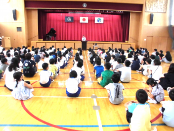 今朝は、9月の「朝会」を体育館で行いました。子供たちが「聴く」ことの大切さについて考えられるよう、校長から講話がありました。校長の話の後には、いつも通り校歌を歌いました。代表の6年生が、双葉小学校校歌の好きなところを紹介してくれたおかげで、全校の素敵な歌声がいつも以上に、体育館に心地よく響きました。