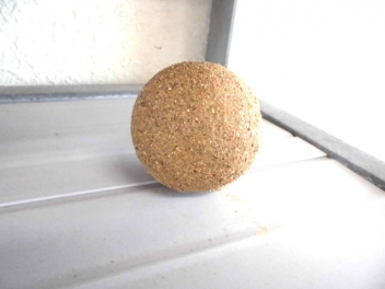 • 昇降口前の棚の上に、直径約5センチの大きさの『どろだんご』が置いてありました。乾かしているのでしょうか?誰が作って置いたのでしょうか?・・・それにしても綺麗なまんまるです。