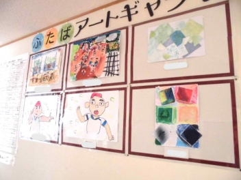 • 図工室前の掲示板に『ふたばアートギャラリー』のスペースを設けました。いろいろな学年の図工作品が飾られています。学校にお越しの際には、ぜひ御覧ください。