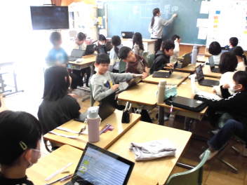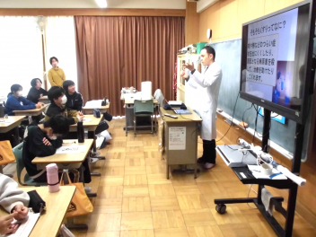 「薬学講座」では、前半は薬の正しい飲み方について、後半は5年生が『喫煙』、6年生が『飲酒』についての話を聴きました。未成年の『喫煙』や『飲酒』が体に及ぼす影響などを、分かりやすく教えてくださいました。