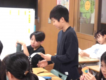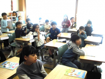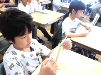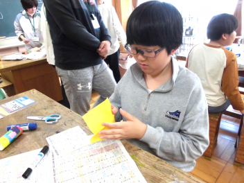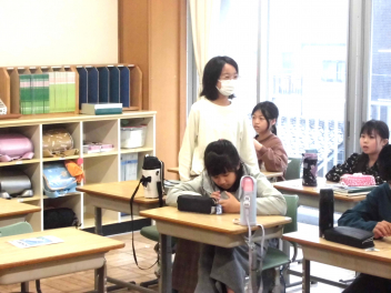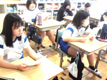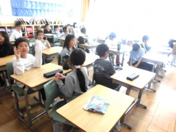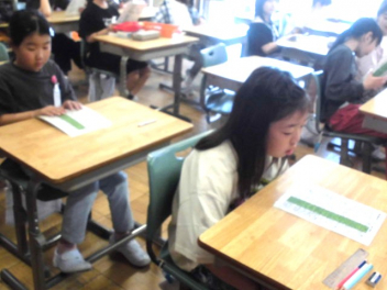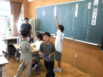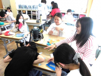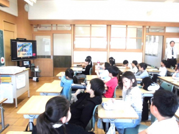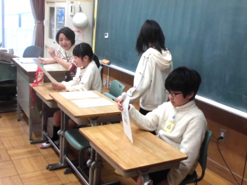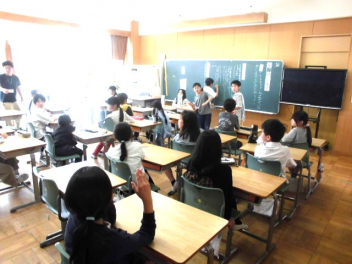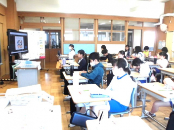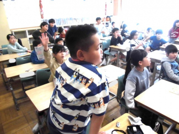 『何のために勉強するのか』『なりたい自分になるためには、どんな力が必要なのか、どう行動すればよいのか』など、担当の教師から説明がありました。また、子供たちは、担任の先生と一緒に個々人が持っているカードを使って、各学年団で設定されている生活の中で身に付けたい力(自己理解・自己管理能力、人間関係・社会形成能力、課題対応能力、キャリアプランニング能力)を確認しました。