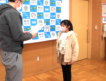 • わかば学級4組の子供たちが、理科「じしゃくの ふしぎ」の学習で、磁石につく物とつかない物を教室の中で探したり、磁石同士を近付けたりして、磁石の性質について調べていました。活動の後、子供たちは発見したことを、進んでみんなに伝えました。