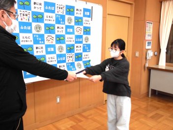 給食の昼の放送の後には、オンラインで2回目の「図書の表彰」を行いました。