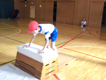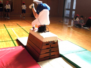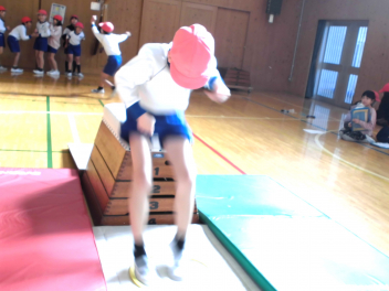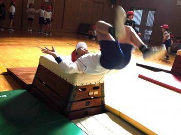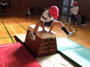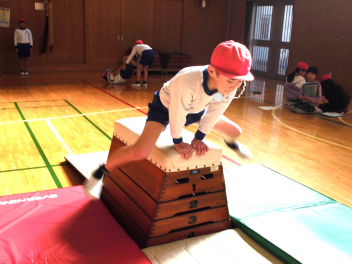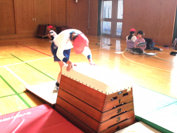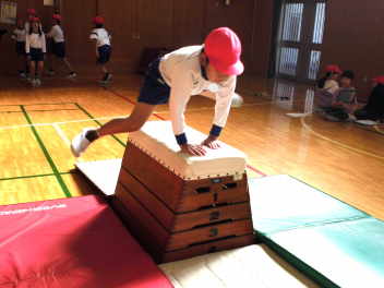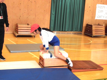 • 3年生は、体育科「跳び箱運動」の学習で、開脚跳び・抱え込み跳び・台上前転の技を練習していました。
